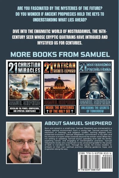 ¿¿¿¿ **Discover the Mysteries of the Future with** ¿¿¿¿ ¿¿¿¿ **21 Nostradamus Predictions: Unlocking the Secrets of Tomorrow** ¿¿¿¿ Are you fascinated by the mysteries of the future? Do you wonder if ancient prophecies hold the keys to understanding what lies ahead? Dive into the enigmatic world of Nostradamus, the 16th-century seer whose cryptic quatrains have intrigued and mystified us for centuries. ¿¿¿¿ **What This Book Offers:** ¿¿¿¿ **Deep Analysis and Interpretation**: Explore 21 of Nostradamus's most compelling predictions, carefully analyzed and interpreted to uncover their possible meanings. Whether you're a skeptic or a believer, this book provides insights that will make you ponder. ¿¿¿¿ **Historical Context**: Understand the backdrop of Nostradamus's time and how his experiences and knowledge influenced his visions. Discover the connections between his world and ours, revealing how history might repeat itself. ¿¿¿¿ **Modern Relevance**: See how these ancient prophecies could relate to contemporary events and future possibilities. From global politics to natural phenomena, find out what Nostradamus might have foreseen for our times. ¿¿¿¿ **Unlocking Secrets**: Learn about the symbolic language and metaphors used by Nostradamus. This book demystifies his writing, making it accessible and engaging for everyone. ¿¿¿¿ **Thought-Provoking Insights**: Each chapter invites you to think critically about the forces shaping our world. Reflect on the themes of destiny, human nature, and the potential for change. ¿¿¿¿ **Why You Should Read This Book:** ¿ **Enrich Your Knowledge**: Gain a deeper understanding of one of history's most famous prophets and the lasting impact of his work. ¿¿¿¿ **Broaden Your Perspective**: Consider new viewpoints and interpretations that challenge conventional wisdom about the future. ¿¿¿¿ **Stay Informed**: Be at the forefront of discussions about prophecy and its place in modern society. Whether for academic interest or personal curiosity, this book keeps you informed and engaged. ¿¿¿¿ **Perfect Gift**: Looking for a unique and thought-provoking gift? This book is ideal for history buffs, mystery lovers, and anyone intrigued by the unknown. ¿¿¿¿ **What Readers Are Saying:** ¿¿¿¿¿¿¿¿¿¿ "A captivating journey through time and prophecy. This book sheds light on Nostradamus in a way that's both scholarly and accessible." ¿¿¿¿¿¿¿¿¿¿ "I couldn't put it down! The connections to modern events are fascinating and made me rethink what I know about history and the future." ¿¿¿¿¿¿¿¿¿¿ "A must-read for anyone interested in prophecy, history, or the mysteries of the future. Truly enlightening." ¿¿¿¿ **Take the Leap into the Future** ¿¿¿¿ Don't miss your chance to explore the timeless wisdom and enigmatic predictions of Nostradamus. "21 Nostradamus Predictions: Unlocking the Secrets of Tomorrow" is your guide to understanding the past, present, and what may come. ¿¿¿¿ **Order Your Copy Today!** ¿¿¿¿ ¿¿¿¿ **Fast Shipping**: Receive your book quickly with our reliable shipping options. ¿¿¿¿ **Easy Payments**: Secure and convenient payment methods. ¿¿¿¿ **Special Offer**: Get a discount on your purchase when you order now! [Insert Discount Code] Join the ranks of readers who have unlocked the secrets of tomorrow. Embark on a journey through the mind of Nostradamus and discover the potential of our future. ¿¿¿¿ **21 Nostradamus Predictions: Unlocking the Secrets of Tomorrow** ¿¿¿¿ Your adventure into the unknown begins here. ¿¿¿¿¿¿