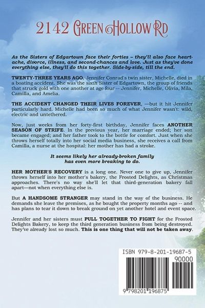 Martha's Vineyard's Sisters of Edgartown face their forties -- a decade of change, of heartache, of divorce, of illness, and of second-chances and love. Just as they've done everything else, they'll do this together. Side-by-side, till the end. Twenty-three years ago, Jennifer Connelly's twin sister, Michelle, died in a boating accident. She was the sixth Sister of Edgartown, the best-friendship-group that struck gold with one another at age four -- Jennifer, Michelle, Olivia, Mila, Camilla, and Amelia. The accident changed their lives forever, of course -- but it hit Jennifer particularly hard. Michelle had been so much of what Jennifer wasn't: wild and electric and untethered. Now, just weeks from her forty-first birthday, Jennifer faces another season of strife. In the previous year, her marriage ended; her son got engaged; and her father took to the bottle hard. Just when she throws herself totally into her social media business, she receives a call from Camilla, a nurse at the hospital: her mother has had a stroke. It seems likely her already-broken family has even more breaking to do. Her mother's recovery is a long one. Never one to give up, Jennifer throws herself into her mother's bakery, the Frosted Delights, as Christmas approaches. There's no way she'll let that third-generation bakery fall apart. Not when everything else is. But a handsome stranger may stand in the way of the business. He demands she leave the premises, as he bought the property months ago -- and has plans to tear it down to break ground on yet another hotel and event space. Jennifer and the other Sisters of Edgartown must pull together to fight for the Frosted Delights Bakery, for their families, and for the island of Martha's Vineyard itself. They've already lost so much. There's no way they'll let him take this. Dive into book one of the Sisters of Edgartown: A heartwarming journey of friendship, loss, and love, and one that will make you fall in love with the Sisters of Edgartown and want the next book. For fans of Pamela Kelley, Caroline Brown, and Debbie Macomber.