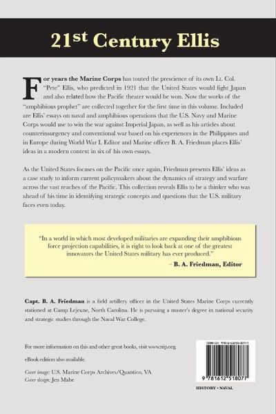 For years, the Marine Corps has touted the prescience of Lt. Col. "Pete" Ellis, USMC, who predicted in 1921 that the United States would fight Japan and how the Pacific Theater would be won. Now the works of the "amphibious prophet" are collected together for the first time. Included are Ellis' essays on naval and amphibious operations that the U.S. Navy and Marine Corps would use to win the war against Imperial Japan, as well as his articles about counterinsurgency and conventional war based on his experiences in the Philippines and in Europe during World War I. As the United States focuses on the Pacific once again, Friedman presents Ellis' ideas as a case study to inform current policymakers about the dynamics of strategy and warfare across the vast reaches of the Pacific. This collection reveals Ellis to be a thinker who was ahead of his time in identifying concepts the U.S. military struggles with even today.