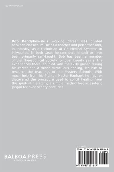 Bob Bendykowski's working career was divided between classical music as a teacher and performer and, in industry, as a technician at GE Medical Systems in Milwaukee. In both cases he considers himself to have been primarily self-taught. Bob has been a member of the Theosophical Society for over twenty years. His experiences there, coupled with the skills gained during his career and a minor miraculous healing, led him to research the teachings of the Mystery Schools. With much help from his Mentor, Master Raphael, he has rediscovered the procedure used to solicit healing from the spiritual hierarchy, a simple method lost in esoteric jargon for over twenty centuries.