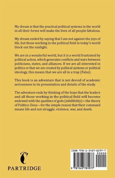 My dream is that the practical political systems in the world in all their forms will make the lives of all people fabulous. My dream ended by saying that I am not against the joys of life, but those working in the political field in today's world block out the sunlight. We are in a wonderful world, but it is a world frustrated by political action, which generates conflicts and wars between politicians, states, and alliances. If we are all interested in politics or that we are created by political systems or political ideology, this means that we are all in a trap (False). This book is an adventure that is not devoid of academic seriousness in its presentation and details of the study. The adventure ends by thinking of the hope that the leaders and all those working in the political field will become endowed with the qualities of gods (infallibility)-the theory of Politico-Deus-for the simple reason that their command means life and not struggle, violence, war, and death.