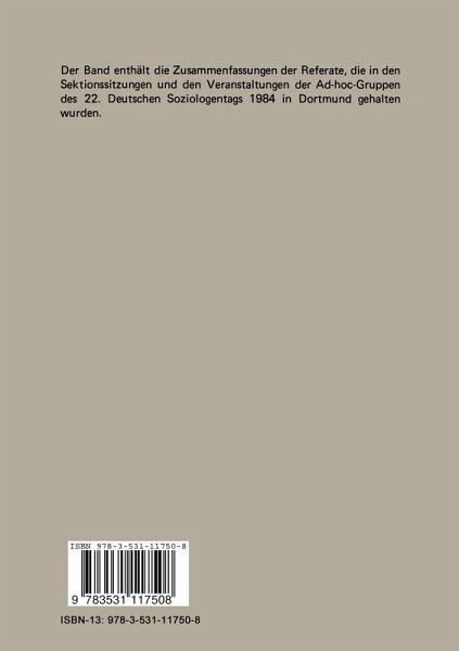 Der 22. Deutsche Soziologentag fand vom 9. bis 12. Oktober 1984 in Dortmund statt. Sein Thema lautete: "Soziologie und gesellschaftliche Entwicklung". Der vorliegende Band dokumentiert die Arbeit der Sektionen und der Ad-hoc-Gruppen. "Sektionen" sind innerhalb der Deutschen Gesellschaft für Soziologie langfristig institutionali sierte Arbeitszusammenhänge, die sich mit jeweiligen "Bereichssoziologien" beschäftigen. "Ad hoc-Gruppen" sind von einem oder mehreren Interessenten zu einem bestimmten Thema initi ierte Arbeitskreise, die zunächst nur im Rahmen eines Soziologentages stattfinden, u.U. aber auch danach noch weiter zusammenarbeiten und eventuell auf einem folgenden Soziologentag wieder vertreten sind. Die Referenten der Sektionen und Ad-hoc-Gruppen wurden vom Herausgeber gebeten, maximal fünfseitige Kurzfassungen ihrer Beiträge anzufertigen. Ich danke allen Autoren, daß sie es ermöglicht haben, eine nahezu vollständige Dokumentation der Sektions- und Ad-hoc Gruppen-Arbeit des Soziologentages vorzulegen. Der Band gibt zugleich einen Eindruck von der Vielfalt und Bandbreite der gegenwärtigen soziologischen Arbeit in der Bundesrepublik Deutsch land, wobei die Beiträge aus Nachbarländern eine Bereicherung darstellen. Danken muß ich den Autoren auch für ihr Verständnis, wenn ich aufgrund der großen Fülle von Beiträgen und des damit verbundenen Umstandes, alles setzen lassen zu müssen, in etlichen Fällen rigide um Einhaltung des vorgegebenen Umfanglimits nachsuchen mußte. In einigen Fällen konnte ich die überschreitung des Limits dulden, weil andere Beiträge ausfielen oder aufgrund von Absprachen unter den Autoren entsprechend gekürzt wurden. Daß die an nähernd 1.400 Seiten Manuskrfpt gesetzt werden konnten, wurde durch einenZuschuß der Stadt Dortmund ermöglicht, für den ich auch an dieser Stelle danken möchte.