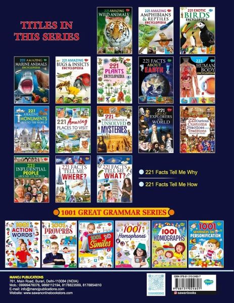 The book ""221 Facts About Earth"" is a comprehensive guide that takes readers on an incredible journey of discovery about our planet. With its size of 11*8.75 inches and 150 gsm paper, this book offers a visually stunning and immersive experience. The pages are adorned with high-definition images and captivating illustrations, making it a visual delight for readers of all ages. The book boasts the best quality art paper, ensuring a rich and vibrant representation of the Earth's diverse landscapes, ecosystems, and geological features. Its glossy finish cover adds a touch of elegance and durability, while the perfect binding ensures that the book withstands the test of time. Inside the pages of ""221 Facts About Earth,"" readers will find a treasure trove of knowledge, covering more than 200 topics related to our planet. From the Earth's formation and structure to its atmospheric conditions, from its geological wonders to its diverse ecosystems and wildlife, this book offers a comprehensive exploration of our home. Each fact presented in the book is meticulously researched and presented in an easy-to-understand language. The aim is to provide readers with a deeper understanding of the Earth and its various aspects, fostering a sense of awe and appreciation for the wonders of our planet. Whether you are a student, a curious learner, or simply someone who appreciates the beauty and complexity of nature, ""221 Facts About Earth"" is a must-have addition to your collection. It offers a captivating blend of scientific information, intriguing facts, and captivating visuals, making it an ideal resource for both educational purposes and leisurely reading. As you delve into the pages of this book, you will uncover fascinating insights about Earth's history, its geological processes, its diverse climates and biomes, and the intricate balance of its ecosystems. You will learn about the remarkable adaptations of plants and animals to their environments, the awe-inspiring natural phenomena that shape our planet, and the importance of conserving and protecting Earth's delicate balance. ""221 Facts About Earth"" is not just an educational resource; it is an invitation to explore, appreciate, and protect the wonders of our planet. It serves as a reminder of the incredible diversity and interconnectedness of life on Earth and the need for sustainable practices to ensure a healthy future for generations to come. With its engaging content, captivating visuals, and user-friendly format, this book is a valuable companion for anyone seeking to expand their knowledge about Earth and deepen their connection to the natural world. Embark on a journey of discovery, and let ""221 Facts About Earth"" open your eyes to the wonders and marvels of our extraordinary planet.