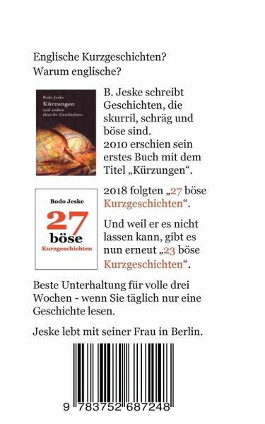 B. Jeske schreibt Geschichten, die böse, auch skurril und schräg sind. Hier nun dreiundzwanzig neue Kurzgeschichten.
