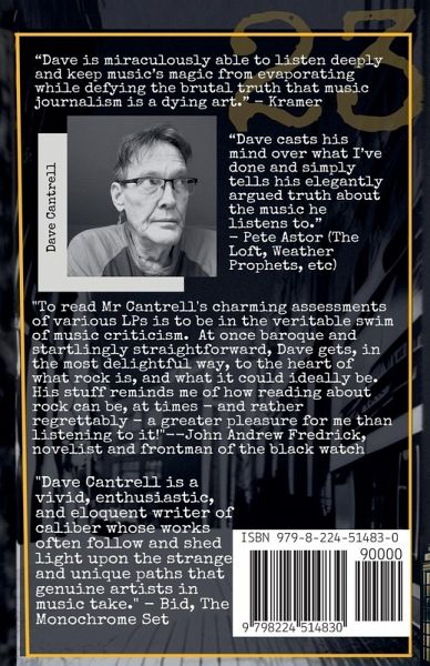 In 23, esteemed music critic Dave Cantrell revisits his favorite reviews and interviews from the last twenty years. Dubbed "The Professor Of Post-Punk," Cantrell is one of the most respected music writers around and his work for Stereo Embers Magazine showcases his precision, his passion and his peerless phrasing. Sharp, witty and filled with comprhensive knowledge, Cantrell's body demonstrates he's practicaly in a class by himself.