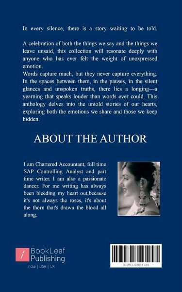 A celebration of both the things we say and the things we leave unsaid, this collection will resonate deeply with anyone who has ever felt the weight of unexpressed emotion. Words capture much, but they never capture everything. In the spaces between them, in the pauses, in the silent glances and unspoken truths, there lies a longing-a yearning that speaks louder than words ever could. This anthology delves into the untold stories of our hearts, exploring both the emotions we share and those we keep hidden.