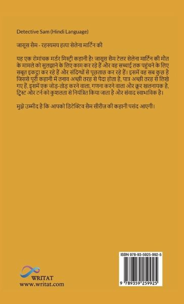 Detective Sam (Hindi): जासूस सैम - रहस्यमय हत्या सेलेना मार्टिन की (Hindi Edition) यह एक रोमांचक मर्डर मिस्ट्री कहानी है! जासूस सैम टेलर सेलेना मार्टिन की मौत के मामले को सुलझाने के लिए काम कर रहे हैं और वह सच्चाई तक पहुंचने के लिए सबूत इकट्ठा कर रहे हैं और संदिग्धों से पूछताछ कर रहे हैं। इसमें वह सब कुछ है जिससे पूरी कहानी में तनाव अच्छी तरह से पैदा होता है, पात्र अच्छी तरह से लिखे गए हैं, इसमें एक जोड़-तोड़ करने वाला, गणना करने वाला और क्रूर खलनायक है, ट्विस्ट और टर्न को कुशलता से नियंत्रित किया जाता है और संवाद स्वाभाविक है। मुझे उम्मीद है कि आपको डिटेक्टिव सैम सीरीज़ की कहानी पसंद आएगी।