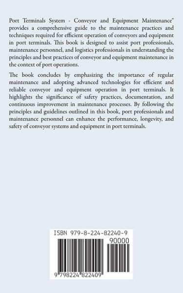 "पोर्ट टर्मिनल सिस्टम - कन्वेयर और उपकरण रखरखाव" पोर्ट टर्मिनलों में कन्वेयर और उपकरणों के कुशल संचालन के लिए आवश्यक रखरखाव प्रथाओं और तकनीकों के लिए एक व्यापक मार्गदर्शिका प्रदान करता है। यह पुस्तक बंदरगाह संचालन के संदर्भ में कन्वेयर और उपकरण रखरखाव के सिद्धांतों और सर्वोत्तम प्रथाओं को समझने में बंदरगाह पेशेवरों, रखरखाव कर्मियों और रसद पेशेवरों की सहायता के लिए डिज़ाइन की गई है। "पोर्ट टर्मिनल सिस्टम - कन्वेयर और उपकरण रखरखाव" एक महत्वपूर्ण संसाधन है जो पेशेवरों को पोर्ट टर्मिनलों की जीवन रेखा को बनाए रखने के लिए आवश्यक ज्ञान और उपकरणों से लैस करता है। जिससे यह पुस्तक लॉजिस्टिक्स और परिवहन की दुनिया में एक अमूल्य संपत्ति बन जाती है। चाहे आप उद्योग के अनुभवी हों या नवागंतुक, यह पुस्तक आपको पोर्ट टर्मिनल सिस्टम को बनाए रखने की चुनौतियों का सामना करने के लिए सशक्त बनाएगी, जिससे अंततः संचालन सुचारू होगा, डाउनटाइम कम होगा और लाभप्रदता बढ़ेगी। 1. टर्मिनल ऑपरेशन 2. सामग्री प्रबंधन उपकरण 3. कंटेनर यार्ड 4. कन्वेयर 5. परिवहन - सूचनाएँ पुस्तक बंदरगाह टर्मिनलों में कुशल और विश्वसनीय कन्वेयर और उपकरण संचालन के लिए नियमित रखरखाव और उन्नत प्रौद्योगिकियों को अपनाने के महत्व पर जोर देकर समाप्त होती है। यह सुरक्षा प्रथाओं, दस्तावेज़ीकरण और निरंतर सुधार के महत्व पर प्रकाश डालता है रखरखाव प्रक्रियाओं में. इस पुस्तक में उल्लिखित सिद्धांतों और दिशानिर्देशों का पालन करके, बंदरगाह पेशेवर और रखरखाव कर्मी बंदरगाह टर्मिनलों में कन्वेयर सिस्टम और उपकरणों के प्रदर्शन, दीर्घायु और सुरक्षा को बढ़ा सकते हैं। वैश्विक व्यापार और वाणिज्य की तेज़ गति वाली दुनिया में, बंदरगाह टर्मिनलों की दक्षता माल के सुचारू प