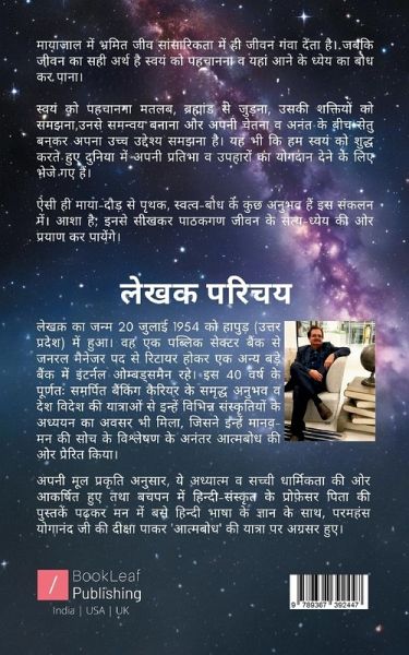 ""मायाजाल में भ्रमित जीव सांसारिकता में ही जीवन गंवा देता है। जबकि जीवन का सही अर्थ है स्वयं को पहचानना व यहां आने के ध्येय का बोध कर पाना। स्वयं को पहचाना मतलब, ब्रह्मांड से जुड़ना, उसकी शक्तियों को समझना,उनसे समन्वय बनाना और अपनी चेतना व अनंत के बीच सेतु बनकर अपना उच्च उद्देश्य समझना है। यह भी कि हम स्वयं को शुद्ध करते हुए दुनिया में योगदान देने के लिए भेजे गए हैं। ऐसी ही माया-दौड़ से पृथक, स्वत्व-बोध के कुछ अनुभव हैं इस संकलन में। आशा है; इनसे सीखकर पाठकगण जीवन के सत्य-ध्येय की ओर प्रयाण कर पायेंगे।""
