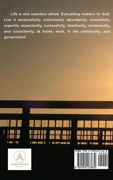 This book is designed to equip people of faith with the basic biblical principles of living. It encourages the ready to live life as one seamless whole in which all we do matters, little or big. With this mentality, we will not excuse our little shortcomings. We will not hesitate to ask God for guidance and assistance in small and big matters. Life is meant to be lived with purpose, according to God's plan for our lives. We should live victoriously, knowing we can do all things in Christ. With an all-counts attitude, we live completely and abundantly, desiring to be all that God wants us to be. Life is too short, so we must live urgently and expectantly, knowing that the best is yet to come. We should strive for success and not be dissuaded by our failures along the way. With God as our guide, we should endeavor to obey Him and be sensitive to the promptings of His Holy Spirit, so we can stay on course to accomplish the purpose for which we were created. We will not always have things go our way, so we must learn to be content and live life one day at a time, and trust God to provide all we need in His time. life is a journey that needs to be traveled consistently and with determination to persist and persevere to till we goal. The book then proceeds to list and discuss some biblical principles that we need to understand and apply to help us along live's journey.