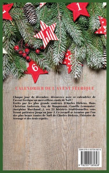 Chaque jour de décembre, découvrez avec ce calendrier de l'avent féerique un merveilleux conte de Noël ! Écrits par les plus grands conteurs (Charles Dickens, Hans Christian Andersen, Guy de Maupassant, Camille Lemonnier, Joséphine Marchand...), ces 24 histoires traditionnelles vous feront patienter jusqu'au jour J. Ce recueil se termine par l'un des plus beaux contes de Noël de Charles Dickens, l'histoire de Scrooge et des trois esprits. Sommaire :1er Décembre : Nuit de Noël de Guy de Maupassant 2 décembre : Le Bonhomme de neige de Hans Christian Andersen 3 décembre : L'arbre de Noël de Charles Dickens 4 décembre : Les sabots du petit Wolff de François Coppée 5 décembre : Noël de Joséphine Marchand 6 décembre : Le Noël du Petit Joueur de Violon de Camille Lemonnier 7 décembre : Une semaine du Petit Elfe Ferme-L'oeil de Hans Christian Andersen 8 décembre Le Petit Noël de Quatre Sans-Culottes de G. Lenotre 9 décembre : Les Trois Messes Basses d'Alphonse Daudet 10 décembre : Le Sapin de Hans Christian Andersen 11 décembre : Noël au Pays de Joséphine Marchand 12 décembre : Conte de Noël de Guy de Maupassant 13 décembre : L'arbre De Noël De Monsieur D'auvrigny de G. Lenotre 14 décembre : Le Rêve d'Antoinette de Joséphine Marchand 15 décembre : Le Noël de Caroline de Louis Dantin 16 décembre : Le pudding de Noël de Charles Quinel 17 décembre : Hier et Demain de Joséphine Marchand 18 décembre : Rikiki - Tradition Orale 19 décembre : Les Pierres de Plouhinec de Charles Émile Souvestre 20 décembre : Le Jour de l'An de Joséphine Marchand 21 décembre : Casse-Noisette d'Ernst Theodor Amadeus Hoffmann 22 Décembre : La Petite Fille et Les Allumettes de Hans Christian Andersen 23 Décembre : La Nuit avant Noël de Clément Clarke Moore 24 Décembre - Contes de Noël de Charles Dickens