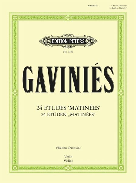 24 Matinées for solo violin by Pierre Gaviniès (1728-1800). Gaviniès was a highly esteemed violinist in his day - Viotti supposedly nicknamed him 'The French Tartini' - and these 24 studies are invaluable for practising various aspects of violin technique including bowing and dexterity in the left hand. Edited by Walther Davisson. 24 Matinées für Violine solo von Pierre Gaviniès (1728-1800). Gaviniès war seinerzeit ein hochgeschätzter Geiger - Viotti nannte ihn angeblich "den französischen Tartini". Diese 24 Etüden sind von unschätzbarem Wert für das Üben verschiedener Aspekte der Geigentechnik, einschließlich der Bogenführung und der Geläufigkeit der linken Hand.