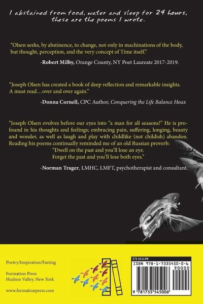 24 Hours is a cherished record of Olsen's abstinence from food, water, and sleep for a twenty-four hour period. These poems are for those who seek profound inner truth, for those who dream consciously, and for those who continue to evolve- every twenty-four hours.
