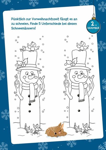 Der Rätselblock verkürzt die Wartezeit bis Weihnachten! Mit 24 winterlichen Rätseln zum Grübeln und Knobeln vergeht die Zeit bis Weihnachten wie im Flug. Jeden Tag lösen Kinder ab 4 Jahren ein neues Rätsel. Fertig? Dann wird die Seite abgerissen und eine neue Aufgabe wartet darauf, gelöst zu werden. Zusätzlich verfügt der Rätselblock noch über ein separates Stickerblatt mit stimmungsvollen Motiven zur freien Verwendung.