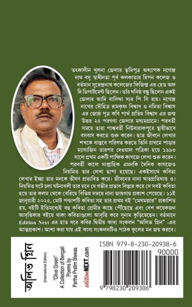 "অলিভ গ্রিন" কবি পার্থ প্রতিম বিশ্বাস রচিত চল্লিশটি বাছাই করা ভিন্ন ভিন্ন স্বাদের বাংলা কবিতার অনবদ্য কাব্য সংকলন। "Olive Green" is an impeccable collection of 40 different Bengali Poems of different tastes, composed by the poet Partha Pratim Biswas.