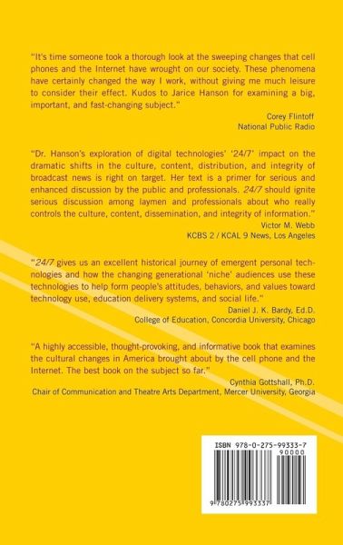 Just as the automobile radically changed people's lives at the beginning of the 20th century, so too has the revolution in online services (including blogging, podcasting, videogaming, shopping, and social networking) and cell-phone use changed our lives at the turn of the 21st century. In addition, many other services, activities, and devices-including the Palm Pilot, the BlackBerry, the iPod, digital cameras, and cell cameras-have been made possible by the combination of these two technologies. Whereas the automobile allowed people for the first time to work in cities and live comfortably in the suburbs, extending the long commute beyond the limits previously circumscribed by public transportation, the Internet and cell phone allow us to interact with others from around the world-or a few hundred miles-from where we work or live, giving rise to the telecommuting phenomenon and allowing us to stay in touch with friends and families in the new virtual environment. As Hanson demonstrates in her new book, these technologies enable us to work and play 24/7, anytime, anywhere. What does this mean for us as individuals and for society as a whole? What are the social implications of this technological revolution that we have witnessed in the short span of about 20 years? Do people of different generations use these technologies in the same ways, or do they adopt them to support their communication habits formed at different times of their lives? How does the illusion of control provided by these technologies affect the way we think about what is meaningful in our lives? Hanson examines the wide-ranging impact of this change. How do individuals posting their viewpoints on the Internet affect democracy? Is it possible to ever completely prevent identity theft over the Internet? How permanent is information stored on the Internet or on a hard drive? Do cell phones change the way people think about privacy or the way they communicate with others? Does email? Do videogames teach new social principles? Do cell phones and the Internet change traditional communication behaviors and attitudes? Hanson discusses these crucial issues and explores to what extent individuals do have control, and she assesses how social and governmental services are responding to (or running from) the problems posed by these new technologies.