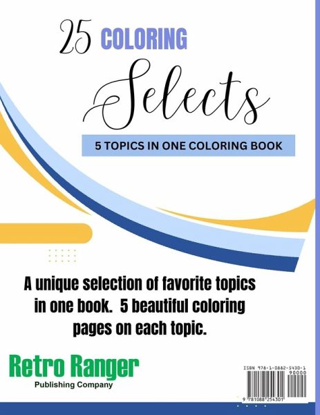 25 Coloring Selects is a coloring book for adults and older children. A unique selection of favorite topics in one book. Book 1 includes: birds, mandalas, flowers, fairy houses, and butterflies. Five beautiful coloring pages on each topic.