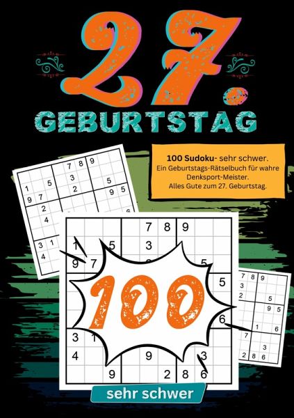 Alles Gute zum 27. Geburtstag- Ein Sudoku Geschenkbuch."Feiern Sie den 27. Geburtstag mit einem Gehirntraining der Extraklasse! Unser Geburtstags Sudoku Geschenkbuch ist das ideale Präsent für jeden Sudoku-Enthusiasten, der eine echte Herausforderung sucht. Mit 100 kniffligen Sudokus, die speziell für diesen besonderen Anlass ausgewählt wurden, ist dieses Buch randvoll mit Stunden voller Denksport-Spaß.Jedes Sudoku in diesem Buch wurde sorgfältig ausgewählt, um maximale Unterhaltung und geistige Anregung zu bieten. Der Schwierigkeitsgrad ist "sehr schwer", um sicherzustellen, dass selbst erfahrene Rätselmeister auf ihre Kosten kommen. Und für diejenigen, die sich einmal verirren, enthält dieses Buch auch Lösungen, damit dem Spaß keine Grenzen gesetzt sind.Dieses Geschenkbuch ist nicht nur eine Herausforderung für den Geist, sondern auch ein Zeichen der Wertschätzung für den Empfänger. Es zeigt, dass Sie ihre Leidenschaft für Rätsel und Denksport teilen und ihnen etwas bieten möchten, das ihre Fähigkeiten auf die Probe stellt.Machen Sie den 27. Geburtstag zu einem unvergesslichen Ereignis mit unserem Geburtstags Sudoku Geschenkbuch. Es ist das perfekte Geschenk für jeden, der eine Leidenschaft für knifflige Rätsel hat und gerne sein Denkvermögen auf die Probe stellt."