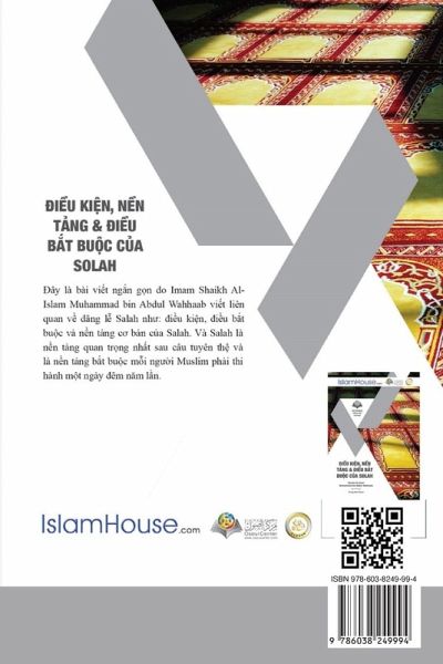Điều Kiện, Nền Tảng & Điều Bắt Buộc Của Salah Đây là bài viết ngắn gọn do Imam Shaikh Al-Islam Muhammad bin Abdul Wahhaab viết liên quan về dâng lễ Salah như điều kiện, điều bắt buộc và nền tảng cơ bản của Salah. Và Salah là nền tảng quan trọng nhất sau câu tuyên thệ và là nền tảng bắt buộc mỗi người Muslim phải thi hành một ngày đêm năm lần. This is a translation of the beneficial treatise of Imaam Muhammadbin 'Abdil-Wahhaab, "Shuroot as-Salaat wa Arkaanuhaa wa Waajibaatuhaa." In this short treatise, Imaam Muhammad bin 'Abdil-Wahhaab, may Allah have mercy on him, briefly outlines the nine conditions for the acceptance of one 's prayer, as well as the fourteen pillars and eight requirements of the prayer, mentioning some of their proofs and evidences from the Book and the Sunnah.