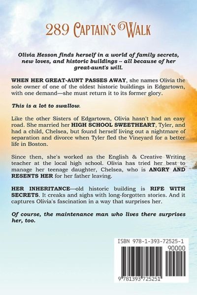 Olivia Hesson finds herself in a world of family secrets, new loves, and historic buildings -- all because of her great-aunt's will. When her great-aunt passes away, she names Olivia the sole owner of one of the oldest historic buildings in Edgartown, with one demand--she must return it to its former glory. This is a lot to swallow. Like the other Sisters of Edgartown, Olivia hasn't had an easy road. She married her high school sweetheart, Tyler, and had a child, Chelsea, but found herself living out a nightmare of separation and divorce when Tyler fled the Vineyard for a better life in Boston. Since then, she's worked as the English & Creative Writing teacher at the local high school. Olivia has tried her best to manage her teenage daughter, Chelsea, who is angry and resents her for her father leaving. Her inheritance--old historic building is rife with secrets. It creaks and sighs with long-forgotten stories. And it captures Olivia's fascination in a way that surprises her. Of course, the maintenance man who lives there surprises her, too. This is book two of the Sisters of Edgartown Series: a new women's fiction series that contains a heartwarming journey of friendship, loss, and love, and one that will make you fall in love with the people of Edgartown and want the next book. For fans of Pamela Kelley, Caroline Brown, and Debbie Macomber.