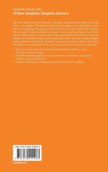 This book addresses the development, properties, and applications of atomic-layered boron, or, borophene. The authors explain how borophene was predicted and created before investigating the properties that make it a desirable and useful material. The material is extremely thin and possesses exotic quantum states of new Dirac physics. Applications in superconductivity, plasmonics, and industrial chemical catalysis are examined, along with an examination of the material's unique hydrogen boride and boron nitride forms. Given the varied potential uses for the new-developed borophene, this timely book will be useful to researchers in academia and industry.