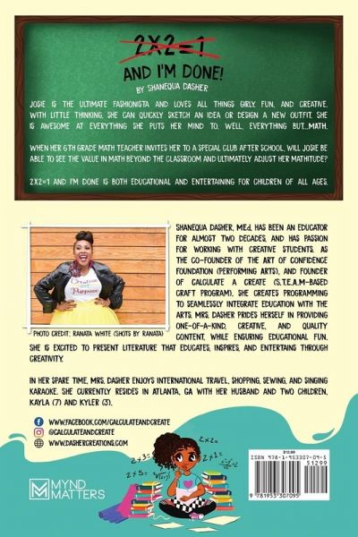 Josie is the ultimate fashionista and loves all things girly, fun, and creative. With little thinking, she can quickly sketch an idea or design a new outfit. She is awesome at everything she puts her mind to. Well, everything but...MATH. When Josie's 6th grade math teacher, Ms. Benson, invites her to a drama club meeting after school, Josie is excited to learn more. However, once there, Josie learns that math is a must! Will she decide she's officially done with math once and for all? Or, will Josie finally be able to see the value in math beyond the classroom and ultimately adjust her mathitude? 2x2=1 and I'm Done is both educational and entertaining for children of all ages.