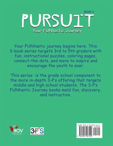 Your FUNtastic journey begins here. This 3-book series targets 3rd to 5th graders with fun, instructional puzzles, coloring pages, connect-the-dots, and more to inspire and encourage the youth to soar. This series is the grade school component to the more in-depth 3-P's offering that targets middle and high school students. The 3-P's FUNtastic Journey books meld fun, discovery, and instruction.