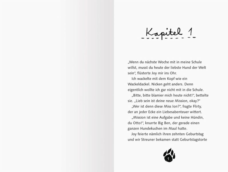 Schule für Menschenkinder? Aus Sicht der drei ehemaligen Straßenhunde King Kerl, Big Ben und Flirty eine sehr seltsame Einrichtung! Warum müssen Joy und ihre Freundinnen und Freunde denn die ganze Zeit stillsitzen? Wie gut, dass es eine Wohlfühlwoche gibt, zu der sie mitkommen dürfen. Eigentlich war nur King Kerl eingeplant, aber zu dritt ist es natürlich viel lustiger. Außerdem können sie so besser herausfinden, warum dieser Junge mit dem Namen Pepe Joy so überhaupt nicht leiden kann.