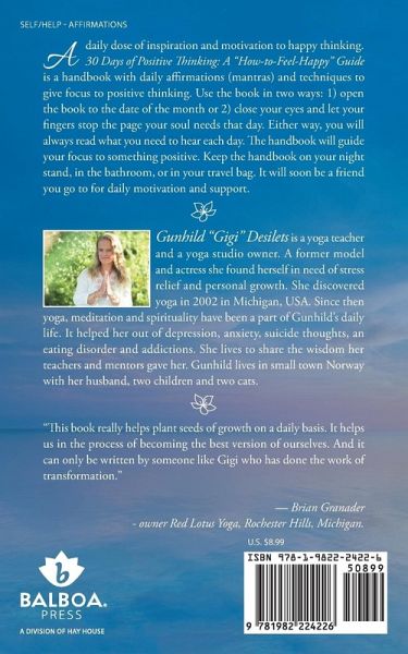A daily dose of inspiration and motivation to happy thinking. 30 Days of Positive Thinking: A "How-to-Feel-Happy" Guide is a handbook with daily affirmations (mantras) and techniques to give focus to positive thinking. Use the book in two ways: 1) open the book to the date of the month or 2) close your eyes and let your fingers stop the page your soul needs that day. Either way, you will always read what you need to hear each day. The handbook will guide your focus to something positive. Keep the handbook on your night stand, in the bathroom, or in your travel bag. It will soon be a friend you go to for daily motivation and support.