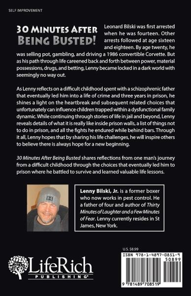 Leonard Bilski was first arrested when he was fourteen. Other arrests followed at age sixteen and eighteen. By age twenty, he was selling pot, gambling, and driving a 1986 convertible Corvette. But as his path through life careened back and forth between power, material possessions, drugs, and betting, Lenny became locked in a dark world with seemingly no way out. As Lenny reflects on a difficult childhood spent with a schizophrenic father that eventually led him into a life of crime and three years in prison, he shines a light on the heartbreak and subsequent related choices that unfortunately can influence children trapped within a dysfunctional family dynamic. While continuing through stories of life in jail and beyond, Lenny reveals details of what it is really like inside prison walls, a list of things not to do in prison, and all the fights he endured while behind bars. Through it all, Lenny hopes that by sharing his life challenges, he will inspire others to believe there is always hope for a new beginning. 30 Minutes After Being Busted shares reflections from one man's journey from a difficult childhood through the choices that eventually led him to prison where he battled to survive and learned valuable life lessons.