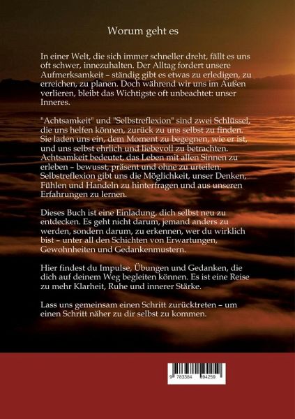 Achtsamkeit:Im Hier und Jetzt präsent sein, ohne zu urteilen.Ursprung: Aus buddhistischen Traditionen, heute auch in Psychologie und Alltag verbreitet.Praxis: Bewusstes Wahrnehmen von Gedanken, Gefühlen und Körperempfindungen.Vorteile: Stressreduktion, bessere Konzentration, emotionale Ausgeglichenheit.Selbstreflexion:Nachdenken über eigene Gedanken, Gefühle, Handlungen und Werte.Ziel: Sich selbst besser verstehen und bewusst handeln können.Methoden: Tagebuch schreiben, Meditation, Feedback einholen, gezielte Fragen stellen (z.B. "Warum habe ich so reagiert?").Vorteile: Persönlichkeitsentwicklung, bessere Entscheidungen, mehr Authentizität.
