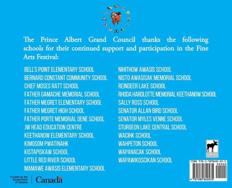 nistomitanaw askiy nihtātāpasinahikēwinkihci mitātahtomitanaw, kēkā-mitātahtwāw mitātahtomitanaw, kētā-mitātahtomitanaw nīsosāp - nīswāw kihci-mitātahtomitanaw nīsitanaw nīsosāpnēhiyawi nikamowina, nīmihitowina, tāpasinahikēwina mīna ācimowina iyinito-ayisiyinīwiwinak ē-miyowātahkik pīkiskwēwina The Prince Albert Grand Council Fine Arts Festival was developed for indigenous students to showcase their artistic abilities through visual arts, dance, music, and writing. To mark the 30th anniversary of the Prince Albert Grand Council Fine Arts Festival, this book was created to showcase the art of indigenous high school students within the Prince Albert Grand Council in Saskatchewan, Canada over the past 30 years. This is the Cree Version of this book. The main body of the book is translated in Cree with English written alongside it.
