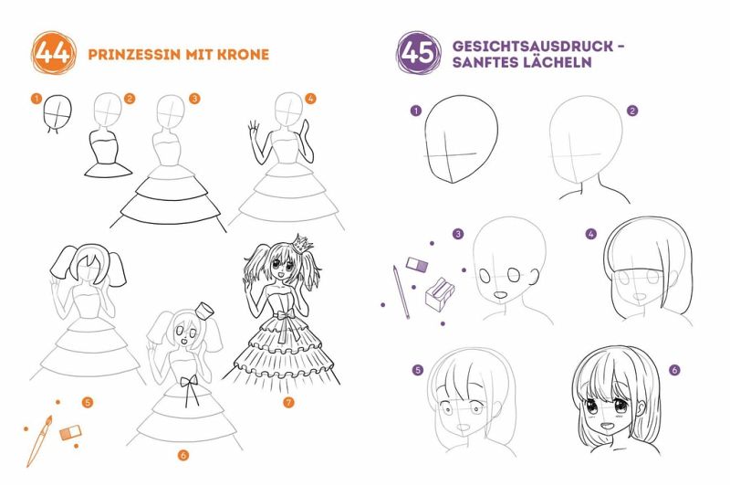 300 Manga-Motive zeichnen - Schritt für Schritt zur fertigen Figur: Das Zeichenbuch zum Mitmachen, mit dem alle lernen können, Manga-Figuren zu zeichnen. Denn Zeichnen ist gar nicht so kompliziert! Dank des Talents der Autorin und Illustratorin Lise Herzog, einer Expertin in der Kunst, Motive in einfache Formen zu zerlegen, wird das Zeichnen von Schulmädchen, Abenteurern, süßen Tieren im Mangastil und vielem mehr zum Kinderspiel. In nur wenigen Schritten ohne Text ist das Motiv fertig und kann bestaunt werden. Extra praktisch: Das Buch im Mitnahmeformat ist mit einer Stiftschlaufe und einem Bleistift versehen und enthält zahlreiche Mitmachseiten, um die Anleitungen sofort umsetzen zu können. Toll geeignet für alle Zeichenanfänger_innen und Familien, die gemeinsam kreativ sein möchten. Starte jetzt und entdecke das Zeichnen für dich!