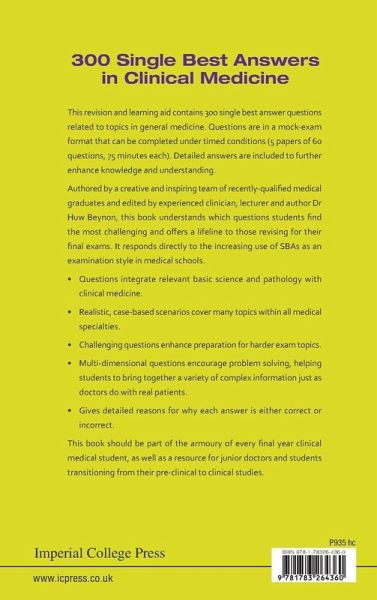This book is a question book that offers single best answers (SBA) to 300 questions related to topics in general medicine. In order to further enhance knowledge and understanding, detailed answers have been included. This book is designed as both a revision and learning aid, with questions being set in a mock-examination format which can be completed under timed conditions. The primary target audience of this book is clinical medical students who are revising for examinations. However, questions have been planned in a way that a fairly large secondary target audience will be reached as well. This includes students who are transitioning from pre-clinical to clinical. As recently qualified medical graduates who have had the option of both online and book-based questions, the authors feel that students often prefer a Single Best Answers book that aids them in advancing their medical knowledge rather than online question banks, which can often have very repetitive and one-dimensional questions. Having questions in paper format replicates examination conditions better than online question banks and, therefore, offers a more realistic revision experience. In addition, though SBAs are becoming increasingly more common as an examination style with medical schools, there are very few SBA question books available. As such, medical students will find this book highly useful in the preparation for their examinations.