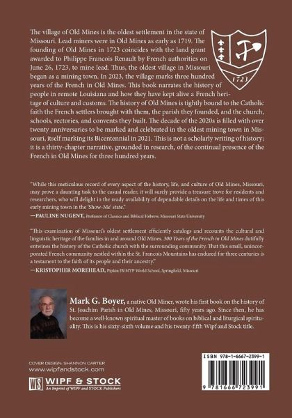 The village of Old Mines is the oldest settlement in the state of Missouri. Lead miners were in Old Mines as early as 1719. The founding of Old Mines in 1723 coincides with the land grant awarded to Philippe Francois Renault by French authorities on June 26, 1723, to mine lead. Thus, the oldest village in Missouri began as a mining town. In 2023, the village marks three hundred years of the French in Old Mines. This book narrates the history of people in remote Louisiana and how they have kept alive a French heritage of culture and customs. The history of Old Mines is tightly bound to the Catholic faith the French settlers brought with them, the parish they founded, and the church, schools, rectories, and convents they built. The decade of the 2020s is filled with over twenty anniversaries to be marked and celebrated in the oldest mining town in Missouri, itself marking its Bicentennial in 2021. This is not a scholarly writing of history; it is a thirty-chapter narrative, grounded in research, of the continual presence of the French in Old Mines for three hundred years.