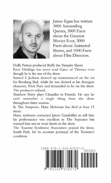 Dolly Parton produced Buffy the Vampire Slayer. Peter Dinklage has never read Game of Thrones even though he is the star of the show. Samuel L Jackson showed up unannounced on the set for Breaking Bad, while he was dressed as his Avengers character, Nick Fury and demanded to be on the show. The producers refused. In Doctor Who, the Twelfth Doctor's costume was inspired by David Bowie. Matthew Perry plays Chandler in Friends. He says he can't remember a single thing from the show throughout three seasons. In The Simpsons, Hans Moleman has died at least 15 times. Many mobsters contacted James Gandolfini to tell him his performance was excellent in The Sopranos but warned him not to wear shorts in the show. Kenneth from 30 Rock is immortal. The first episode of Game of Thrones was so bad, it had to be reshot. Millie Bobby Brown was 11 when she was cast as Eleven in Stranger Things. The Tourette Syndrome Association praised the show, South Park, for its accurate portrayal of the Tourette's condition.