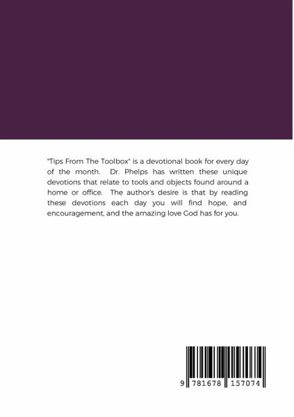 31 Tips From The Toolbox; Devotions for everyday of the month. Daily devotions written by Dr. Robert C. Phelps relating to tools and objects found in a house or building.