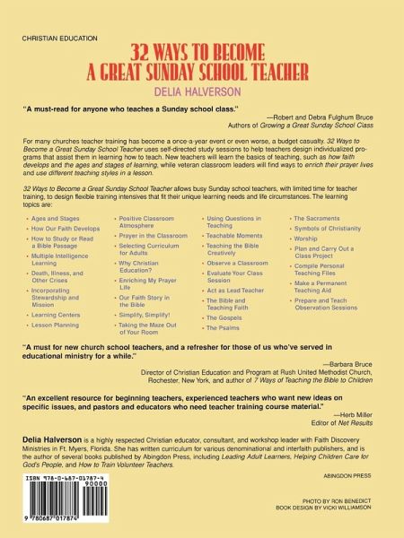 Delia Halverson, a Christian education specialist, is a veteran classroom and workshop leader with more than 20 years' experience. She has written extensively in the area of religious education and is the author of 32 Ways to Become a Great Sunday School Teacher, How to Train Volunteer Teachers, Leading Adult Learners and My Cup Runneth Over... Devotions for Teachers. She is the author of over fifteen books and is well known for her articles and curriculum writing. She lives in Woodstock, Georgia.