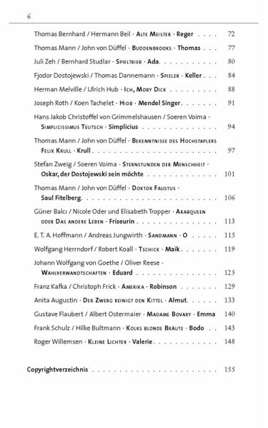 Mit Texten von u.a.: Wolfgang Herrndorf, Juli Zeh, Ildikó von Kürthy, Ingo Schulze, Thomas Mann, Fjodor Dostojewski.