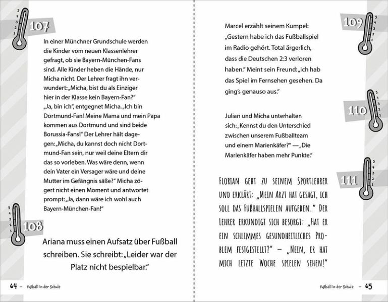 Hier kann sich jeder kugelrund lachen, denn die Witze werden mit humorvollen Schwarz-Weiß-Illustrationen und Cartoons großartig untermalt. Und mit dem innovativen Witz-O-Meter kannst du jeden Witz bewerten. Ein Witzebuch zum Selberlesen oder Weitererzählen.