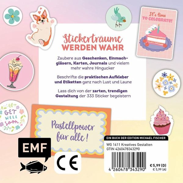 Pastellpower für alle - mit den 333 liebevoll gestalteten Stickern und Etiketten verwandelst du Geschenke, Karten, Journals und vieles mehr ganz einfach in wahre Hingucker! Besonders praktisch und wunderschön sind die Etiketten dank ihrer beschreibbaren Oberfläche und pastelligen Gestaltung.
