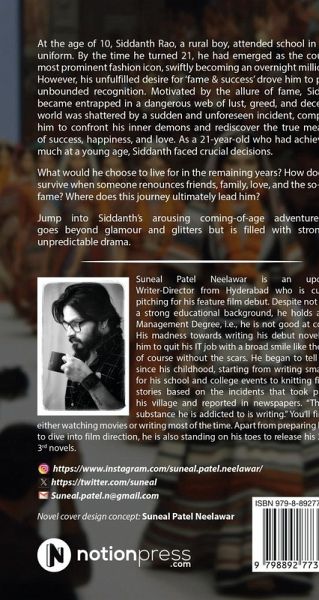 At the age of 10, Siddanth Rao, a rural boy, attended school in a torn uniform. By the time he turned 21, he had emerged as the country's most prominent fashion icon, swiftly becoming an overnight millionaire. However, his unfulfilled desire for 'fame & success' drove him to pursue unbounded recognition. Motivated by the allure of fame, Siddanth became entrapped in a dangerous web of lust, greed, and deceit. His world was shattered by a sudden and unforeseen incident, compelling him to confront his inner demons and rediscover the true meanings of success, happiness, and love. As a 21-year-old who had achieved so much at a young age, Siddanth faced crucial decisions. What would he choose to live for in the remaining years? How does one survive when someone renounces friends, family, love, and the so-called fame? Where does this journey ultimately lead him? Jump into Siddanth's arousing coming-of-age adventure that goes beyond glamour and glitters but is filled with strong yet unpredictable drama.