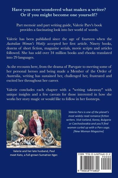 Have you ever wondered what makes a writer? Or if you might become one yourself? Part memoir and part writing guide, Valerie Parv's book provides a fascinating look into her world of words. Valerie has been published since the age of fourteen when the Australian Women's Weekly accepted her first article. Ninety books, dozens of short fiction, magazine serials, movie scripts and articles followed. She has sold over 34 million books and ebooks translated into 29 languages. As she recounts here, from the drama of Parvgate to meeting some of her personal heroes and being made a Member of the Order of Australia, writing has sustained her, challenged her, frustrated and excited her throughout her career. Valerie concludes each chapter with a "writing takeaway" with unique insights and a few caveats for those interested in how she works her story magic or would like to follow in her footsteps. Valerie Parv is one of the planet's most widely read romance fiction writers. Visit Iceland, Korea, Bulgaria or Czechoslovakia and you'll find women curled up with a Parv saga. [New Woman Magazine]