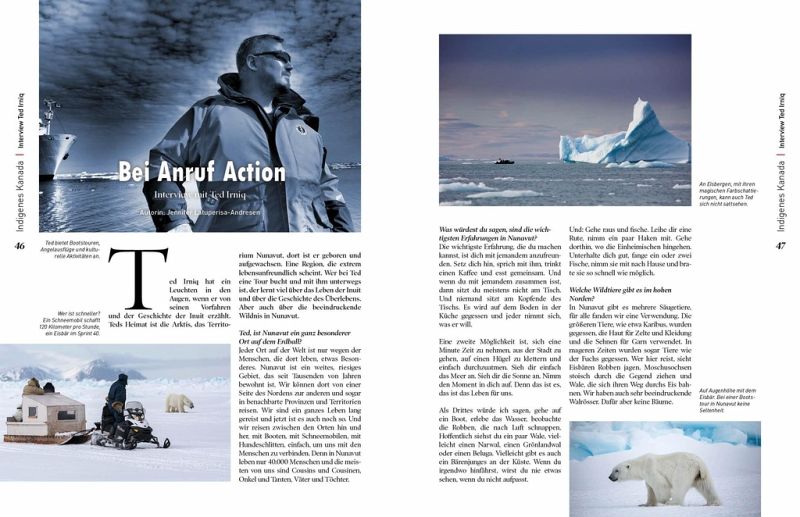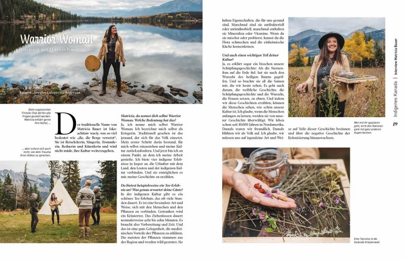 Inspirierend, kraftvoll, friedlich - die indigenen Kulturen Kanadas leben seit Jahrtausenden in Harmonie mit der Natur. Und sie bereiten seit jeher ihren Gästen ein warmes Willkommen mit Gesang, Geschenken und Zeremonien. Wer nach Kanada reist, der kann der Kultur der First Nations hautnah begegnen und beeindruckende, erfüllende und authentische Erfahrungen sammeln. Denn die indigenen Völker laden die Welt mit offenen Armen ein, sich mit ihrer Lebensweise, ihrem Wissen und den Traditionen vertraut zu machen - auf einmaligen Erlebnistouren und Abenteuern, die den Blick auf die Welt verändern werden. Die Auswahl an Abenteuern ist groß: Zu rund 170 Erlebnissen in ganz Kanada laden die über 100 unterschiedlichen indigenen Völker Besucher ein. Wer teilnimmt, wird nicht nur durch das einzigartige Erlebnis, sondern auch mit ihrem Spirit, ihrer Sanftmut und ihrer Weisheit reich beschenkt. Eine spannende und abwechslungsreiche Auswahl von authentischen und zertifizierten Begegnungen mit der indigenen Kultur Kanadas stellen wir Ihnen in diesem Heft vor. Authentische Erlebnisse mit erfahrenen Guides in der Natur, neue Perspektiven auf Kanadas Tierwelt, Begegnungen mit starken indigenen Frauen bis hin zu kulinarischen Erlebnissen erwarten Sie auf insgesamt 48 Seiten.