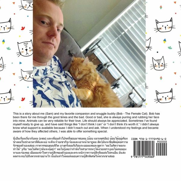 นี่เป็นเรื่องเกี่ยวกับผม (แซม) และเพื่อนตัวโปรดที่ชอบมาซบผม (บ๊อบ แมวเพศเมีย) บ๊อบได้อยู่เคียงข้างผมในช่วงเวลาที่ดีและแย่ จะดีจะร้ายเขาก็จะร้องและเอาหน้ามาถูผม สัตว์มันจะซื่อสัตย์ต่อความรักของตัวเองเสมอ เราควรขอบคุณชีวิต บางครั้งผมก็เกือบจะยอมแพ้และพูดว่า "ผมไม่คิดว่าผมจะทำได้" หรือ "ผมไม่คิดว่ามันจะคุ้มค่า" ผมไม่รู้เลยว่ากำลังใจสามารถหาได้ง่ายเพราะผมไม่เคยมองหาและร้องขอ เมื่อผมเข้าใจความรู้สึกของตัวเองและตระหนักว่าความรู้สึกที่ผมส่งให้คนอื่น มันส่งผลกระทบไปถึงพวกเขาอย่างไร นั้นมันทำให้ผมส่งมอบความรู้สึกพิเศษให้พวกเขาเสมอ This is a story about me (Sam) and my favorite companion and snuggle buddy (Bob - The Female Cat). Bob has been there for me through the good times and the bad. Good or bad, she is always purring and rubbing her face into mine. Animals can be very reliable for their love. Life should always be appreciated. Sometimes I've found myself ready to give up, and have said things like "I don't think I can" or "I don't think it's worth it." I didn't always know what support is available because I didn't reach out and ask. When I understood my feelings and became aware of how they affected others, I was able to offer something special.