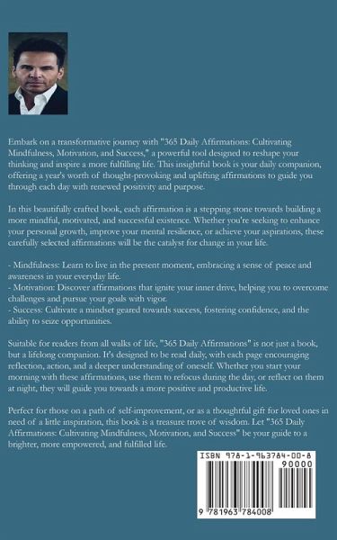 Dive into '365 Affirmations: Cultivating Mindfulness, Motivation, and Success,' a daily companion designed to guide you through a year of transformation. Each of the 365 affirmations is a beacon of inspiration, carefully crafted to foster positive thinking, self-awareness, and a proactive approach to life's challenges. This book not only offers a daily dose of motivation but also delves into the purpose and history of affirmations, illuminating how these powerful statements can rewire our thoughts and propel us towards our goals. With examples that resonate and inspire, you'll discover how to harness the energy of positive thinking to manifest success, cultivate mindfulness, and unlock your true potential. Begin any day of the year and embark on a journey to a more mindful, motivated, and successful you.