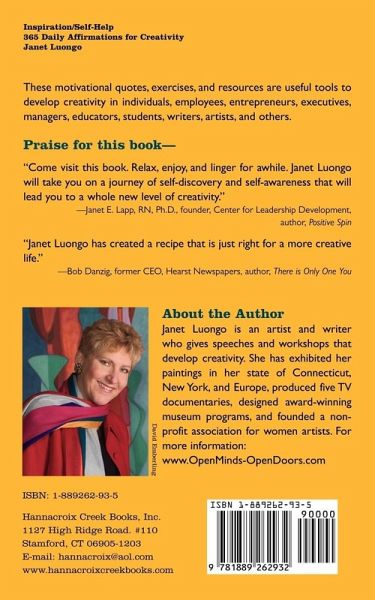 Workshop leader, artist, writer, and creativity expert Janet Luongo provides 365 inspiring affirmations to improve creativity at work, school, and in your life. There are also 60 simple and effective exercises to develop creativity as well as a bibliography of books, articles, plus website resources. Foreword by bestselling author Jack Canfield (Chicken Soup for the Soul® book series).