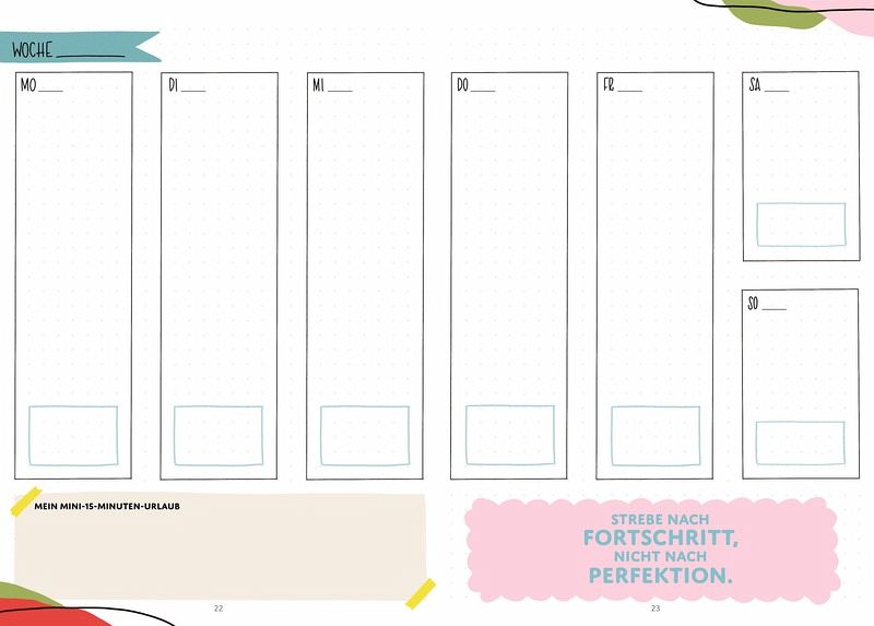 - Flexible Wochen- und Monatsübersichten, die du jederzeit beginnen kannst