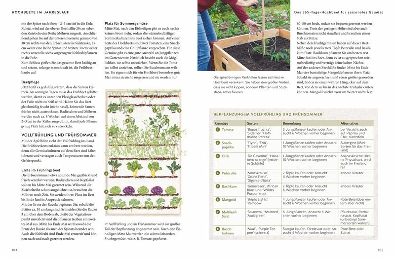 Die erfahrene Hochbeet-Expertin Dorothea Baumjohann bietet in diesem Ratgeber ein einzigartiges Komplettpaket: Neben hilfreichem Grundwissen zum Gärtnern mit dem Hochbeet gibt es praktische Schritt-für-Schritt-Anleitungen zum Hochbeet-Bau und die besten Hochbeet-Pflanzen im Porträt. Anhand sechs verschiedener Themenhochbeete für unterschiedlichste Vorlieben und Geschmäcker zeigt Ihnen die Autorin die mögliche Vielfalt und ideale Gemüse-Kombinationen. Und das Beste dabei: Für jede phänologische Jahreszeit gibt es übersichtliche Anbaupläne. Zudem beschreibt sie jeweils die aktuelle Bepflanzung und erklärt die anfallende Hochbeet-Praxis. Worauf warten Sie noch? Legen auch Sie los mit dem Ganzjahres-Hochbeet. Denn Winterpause war gestern!