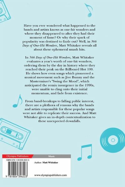 Have you ever wondered what happened to the bands and artists known as one-hit wonders and where they disappeared to after they had their moment of fame? Or why their spark of popularity was destined to fizzle out? Well, in 366 Days of One-Hit Wonders, Matt Whitaker reveals all about these ephemeral smash hits. In 366 Days of One-Hit Wonders, Matt Whitaker evaluates a year's worth of one-hit wonders, ordering them by the day in history where they reached their peak on the Billboard Hot 100. He shows how even songs which pioneered a musical movement such as Jive Bunny and the Mastermixer's "Swing the Mood", which anticipated the remix insurgence in the 1990s, were unable to cling onto their initial momentum, and fade from existence. From band-breakups to falling public interest, there are a plethora of reasons why the bands and artists responsible for these popular songs were not able to replicate their success. And Matt Whitaker gives an in-depth contextualization to these unexpected downfalls.